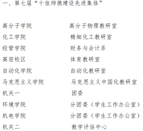 据悉,青岛科技大学2019年度先进集体和先进工作者的评选工作,在年度考核的基础上,经学校30个党组织评选推荐和学校三育人工作领导小组投票评选,学校纪委、人事处、教务处、保卫处、后勤处等部门审查,并确定表彰名单。最终,共评选出“十佳师德建设先进集体”10个,“十佳育人标兵”10名,2019年度青岛科技大学先进集体68个,先进工作者222名。
