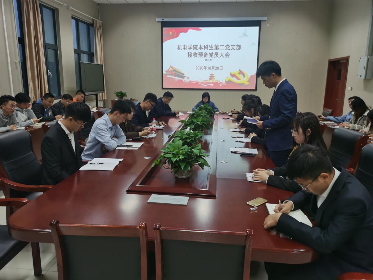 10月20日下午,米乐mile官方网站本科生第二党支部在机电楼518会议室隆重召开接收预备党员支部大会,支部全体党员参加会议,会议由支部书记王娟娟主持。
