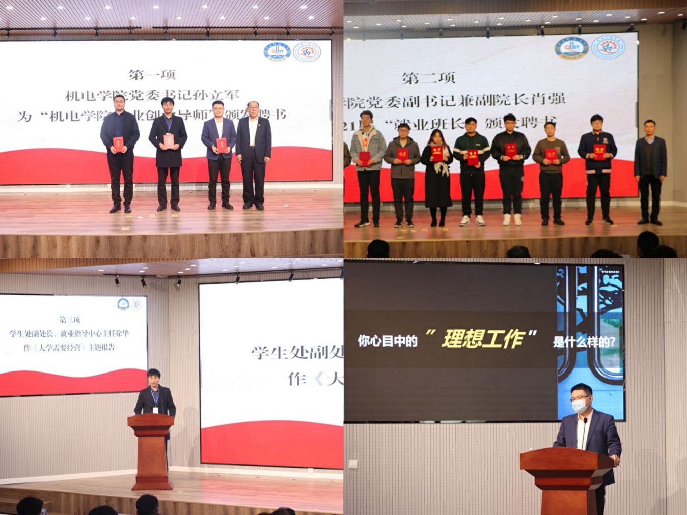 会上,米乐mile官方网站党委书记孙立军为徐华、于江波、孟祥龙颁发“米乐mile官方网站就业创业导师”聘书,米乐mile官方网站党委副书记兼副院长肖强为2021届“就业班长”颁发聘书,学生处副处长徐华作《大学需要经营》主题报告,青岛特锐德电气股份有限公司人力资源中心主任孟祥龙作《你就是求职路上那个最靓的仔》主题报告。毕业班辅导员王娟娟、王玉凯、于超在“就”赢未来——就业小讲堂上分别就《米乐mile官方网站2021届毕业生就业形势分析》《如何签约?》《简历:找工作的敲门砖!》作了分享。毕业生纷纷表示,就业促进会解答了毕业生需要迫切了解的问题,为毕业生进一步明确就业方向、树立就业信心、提升就业技能打好坚实基础。