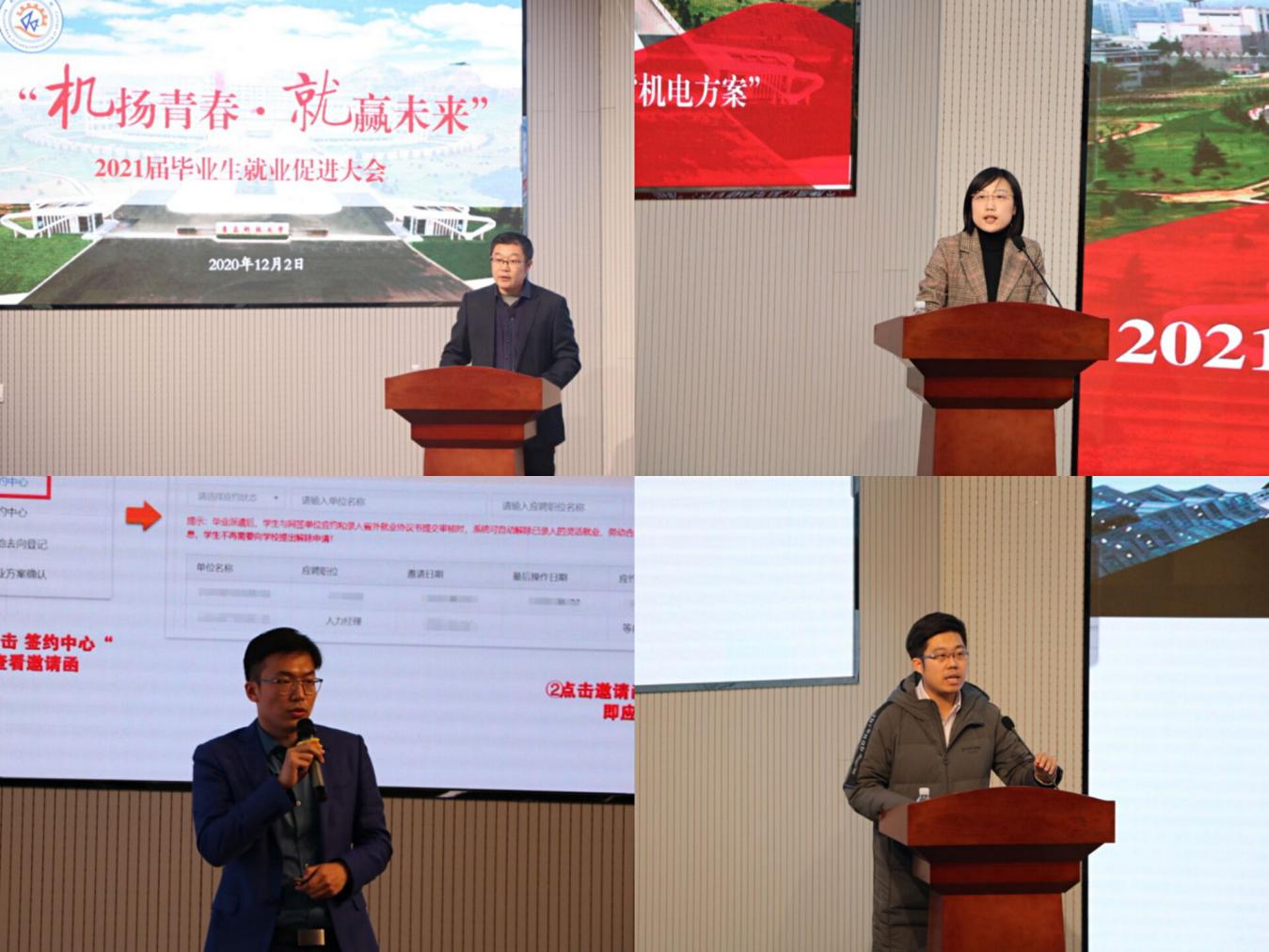 为深入学习贯彻党的十九届五中全会精神,积极响应党中央、国务院“稳就业”“保就业”决策号召,全面贯彻落实2021届全国普通高校毕业生就业创业工作网络视频会议精神,12月2日下午,米乐mile官方网站在D3-530会议室举办“‘机’扬青春·‘就’赢未来”2021届毕业生就业促进大会。青岛特锐德电气股份有限公司人力资源中心主任孟祥龙,学生处副处长、就业指导中心主任徐华,学生处就业指导中心副主任于江波,米乐mile官方网站党委书记孙立军,米乐mile官方网站党委副书记兼副院长肖强,毕业班辅导员,2021届毕业生代表等参加会议。会议由米乐mile官方网站团委书记兼学工办主任王作辉主持。