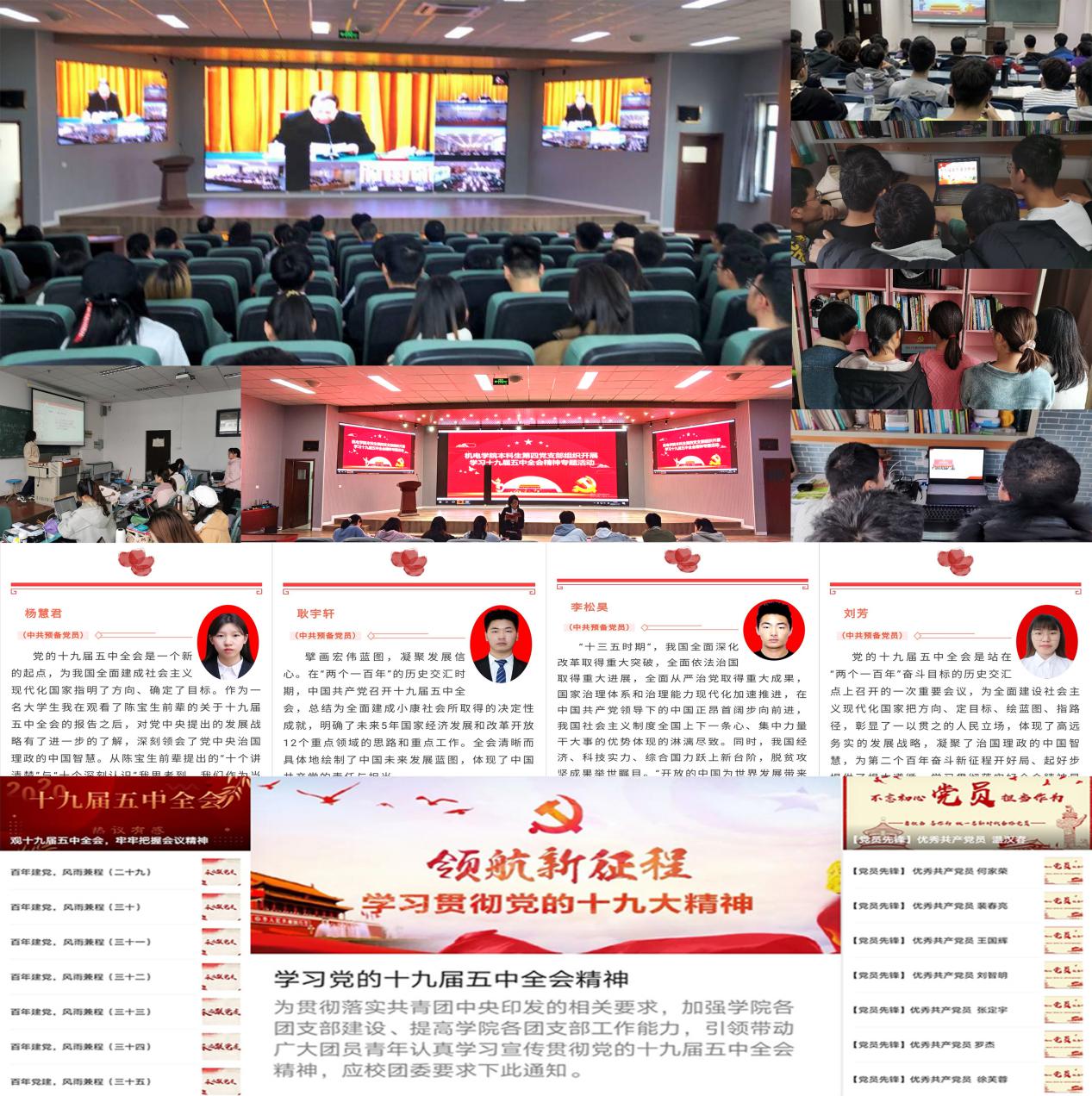 基层组织广泛学。以学懂、弄通、做实为目标,各党支部积极组织召开学习党的十九届五中全会精神专题会议,广大师生积极响应并展开热议,千方百计引导大家用新思想“补钙加油”。