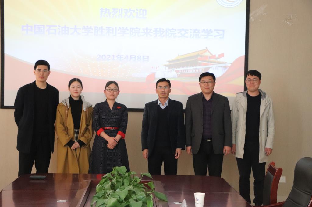 4月8日上午,中国石油大学胜利学院一行来米乐官网交流工作。中国石油大学胜利学院油气工程学院党总支副书记李聪聪、团总支书记伍佳慧、辅导员李文强参加交流学习。学院党委副书记兼副院长肖强、学工办主任兼团委书记王作辉以及学院辅导员代表参加会议。