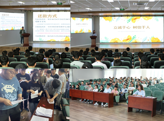 活动中,机械实验171班任月浩为同学们详细介绍了个人征信、国家开发银行助学贷款毕业生确认流程及违约责任等相关知识,让与会同学更加深入地了解相关政策,珍惜维护个人信用,争做诚信之人。团委负责老师李慧敏为大家详细讲解了《山东省高校毕业生学费和国家助学贷款补偿实施细则》《山东省服兵役高等学校学生国家教育资助实施细则》等文件。