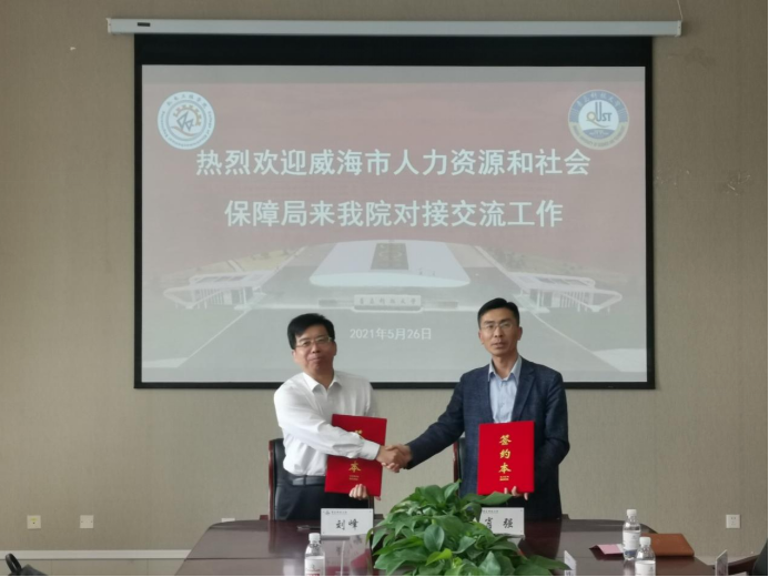 5月26日,威海市人力资源和社会保障局副县级干部刘峰一行5人来米乐官网考察交流,与米乐官网在威就业对接工作,学院党委副书记兼副院长肖强主持会议。