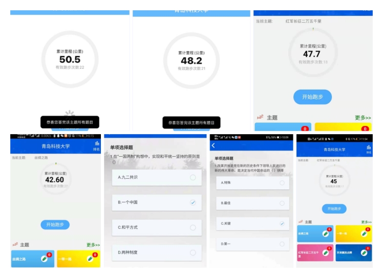 奋力奔跑,结合课程思政。学院积极贯彻“拥抱体育、出彩人生”理念,落实体育综合改革与思政教育相结合的成效,提高爱体育APP思政答题成效,并结合开设的形势与政策课程巩固、落实思政答题效果。