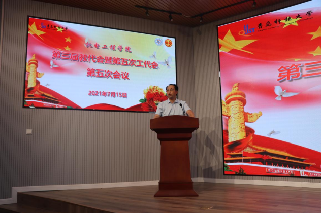 2021年7月15日14时,米乐mile官方网站第三届教代会暨第五次工代会第五次会议在D3楼530会议室举行。学院党委书记孙立军,学院院长何燕、学院党政领导班子成员、教师代表及工会会员代表出席了大会,大会由学院党委书记孙立军记主持。