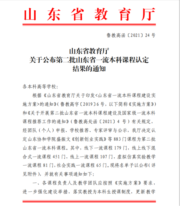 首批一流课程认定中,学院已暂获4门省一流课程,1门国家一流课程,本次认定后,学院的省一流课程达到6门,再创新高。