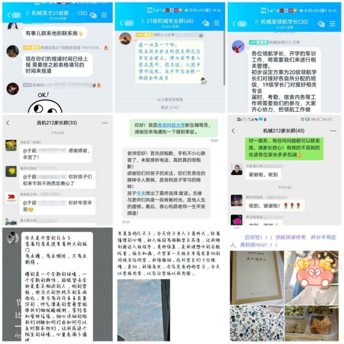 悉“心”培育,全面适应大学。学院将1068名学生在开学前两周完成100%对接,个别电话无法联系到的新生,通过多方途径联系到位。米乐mile官方网站建立2021级官方新生年级群、专业群、班级群,就校园布局,教学楼、食堂、浴室、快递收发点等位置,科大美食,周边景区等进行答疑。提前摸排学生健康码、14天行程轨迹、疫苗接种率、核酸检测证明等信息。建立家长微信群,做好家校共育工作,学生进校后及时了解关注学生动态,做到让家长放心,让学生安心。今天刚到校的新生说:“自从录取结果出来之后,辅导员老师第一时间便与我取得了联系,专业群和班级群中发布了很多有关疫情防控期间返校的温馨提示,老师、学长一一解答。学长老师总是有问必答,给了我们很多学习成长的经验。”更有许多同学在朋友圈空间晒出来自学校无微不至的关怀,老师细心帮助的服务,为学校的疫情防控工作和老师们学长们用“心”服务点赞。
