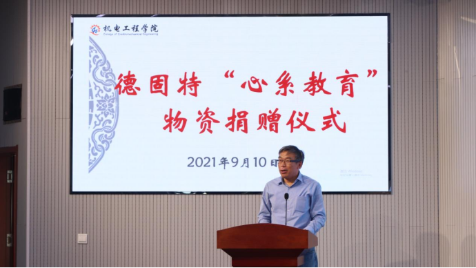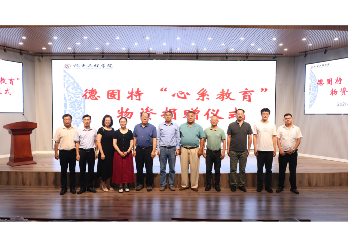 9月10日,适逢第37个教师节,米乐mile官方网站举办德固特“心系教育”物资捐赠仪式。青岛德固特节能装备股份有限公司董事长魏振文、副总经理崔建波、研发部部长金延超、综合部部长李红娟、学校原党委副书记张元利、米乐mile官方网站党委书记孙立军、院长何燕及教师代表参加活动。