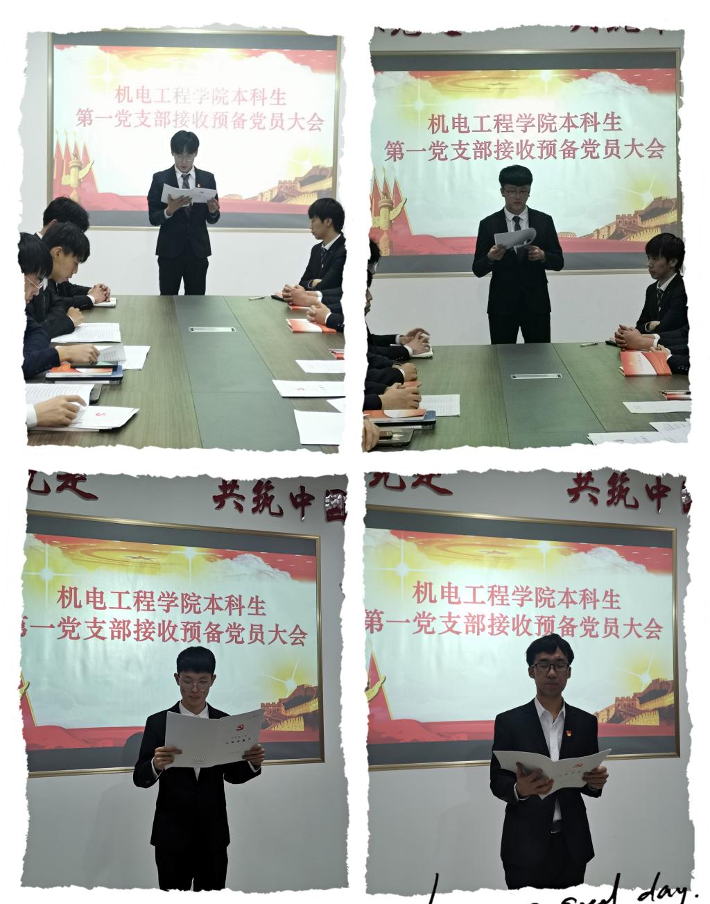 11月25日,米乐mile官方网站本科生第一党支部在机电529先后三次召开接收预备党员大会,会议吸纳了张致远等14名同志加入党组织。会议由支部书记于超主持,全体党员参加。