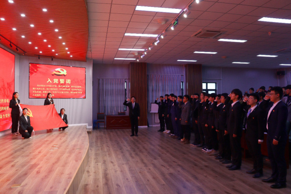 转正党员代表马元宇领誓,全体党员重温誓词并庄严宣誓。