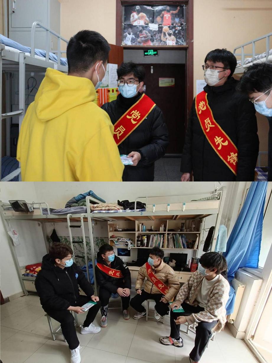 为尽快遏制疫情发展,给同学们营造一个健康、安全的学习和生活环境,充分调动和发挥党支部的战斗堡垒作用和党员的先锋模范作用,米乐mile官方网站本科生第一党支部第一时间成立抗击疫情党员先锋岗。3月19日,支部党员代表在做好疫情防护工作的情况下,到宿舍楼中给同学们送温暖。张致远、王立瓒等同志向21级机械实验、机械中韩、高机、智造专业同学发放医用外科口罩,并和同学们针对疫情之下线上授课的心理变化及学校最新防疫政策等方面进行了深入交流。