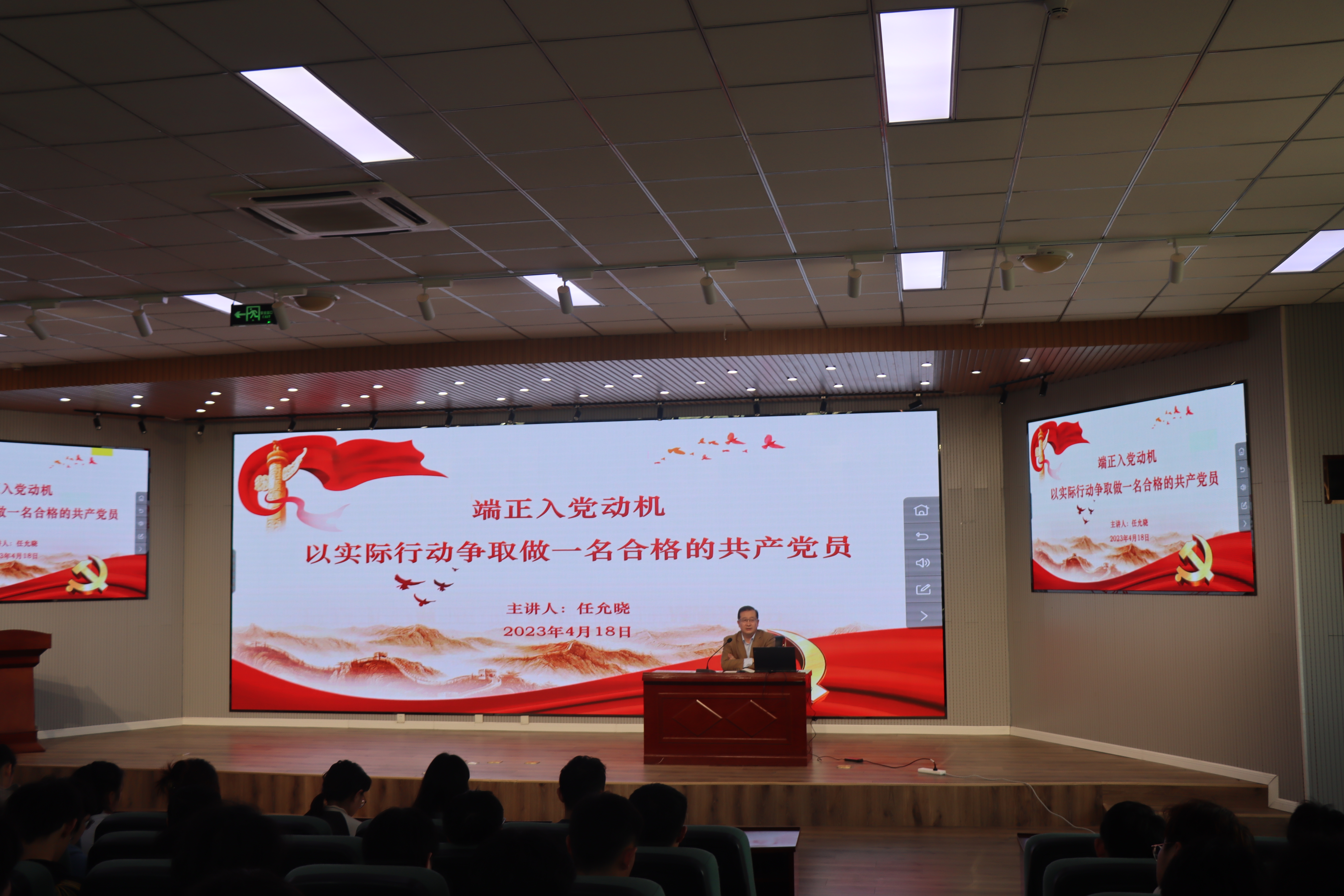 为了加强对入党积极分子的培训工作,深化党的思想引领,进一步提高入党积极分子的基础理论素养,4月18日,米乐mile官方网站党委书记任允晓为学院2023年春季学期入党积极分子讲授了主题为“端正入党动机,以实际行动争取做一名合格的共产党员”的专题党课,214名学员参加了党课。