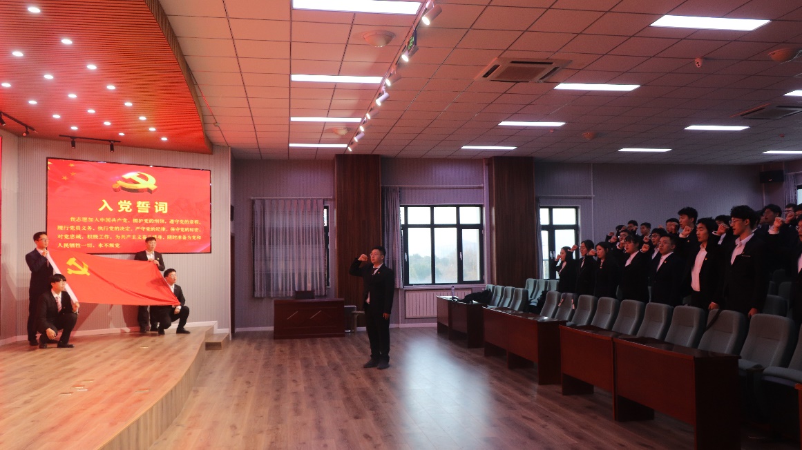 新发展党员代表宋旭衡领誓,全体党员重温誓词并庄严宣誓。