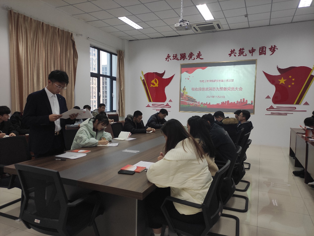 11月23日下午,米乐mile官方网站研究生第三党支部在机电楼529会议室召开预备党员转正大会,支部党员全员参加会议,会议由宗萌主持。