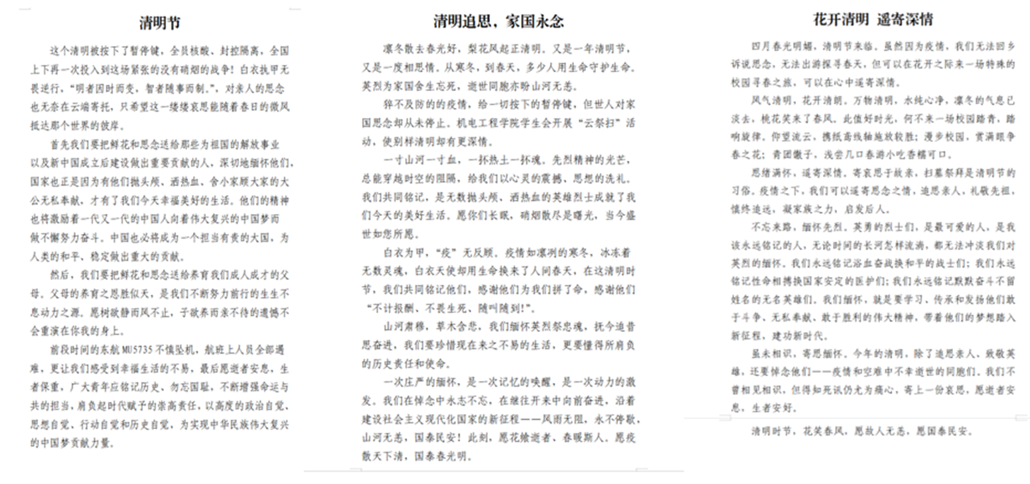 天地英雄气,千秋尚凛然——米乐mile官方网站学生会开展“清明寄哀思”征文活动。组织学生们以笔寄情,与英烈对话,提高思想觉悟,坚定理想信念,汲取不畏强敌、不畏风险、敢于斗争、奋勇向前的勇气与力量。