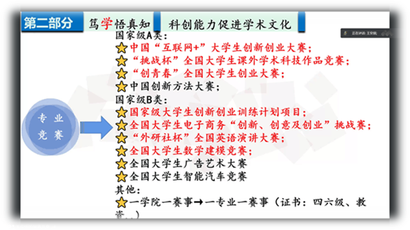二、笃学悟真知。王安琪鼓励同学们多参加“互联网+”、“挑战杯” 等赛事,以提高自己的专业素养以及科创能力。