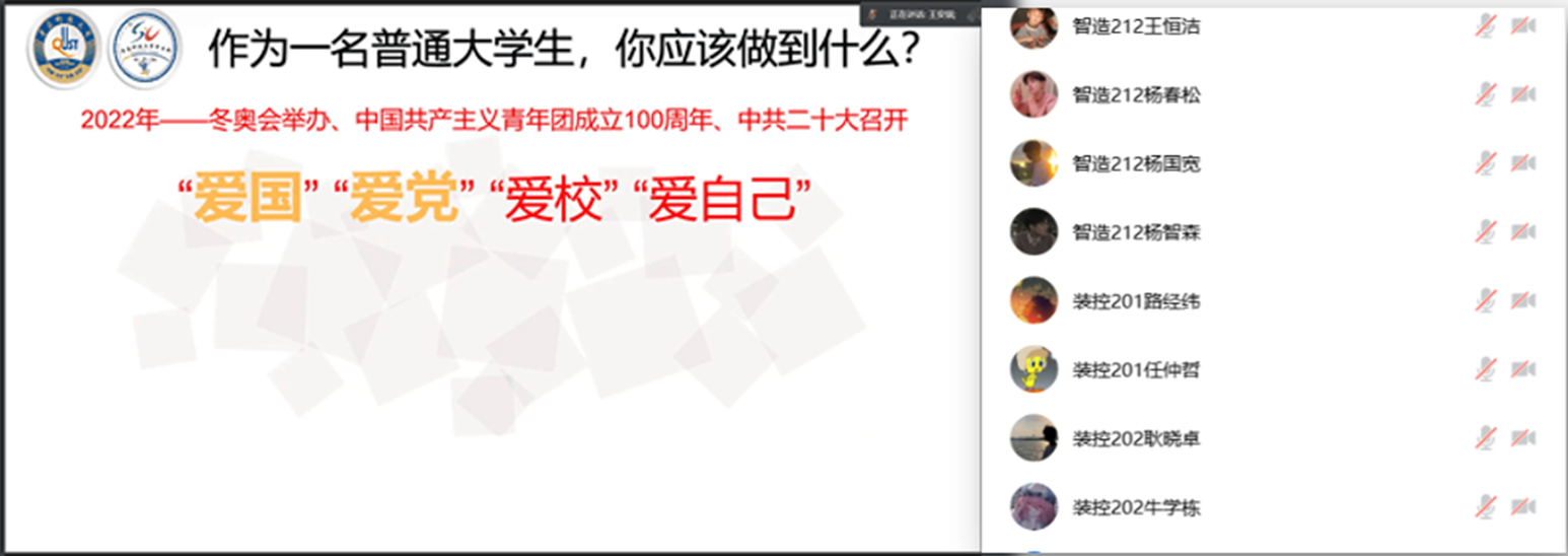 3月31日晚八点,为切实提高2021级学生的思想觉悟,端正入党动机,坚定理想信念,扎实做好学生的培养和教育工作,深入推进“青马工程”建设,米乐mile官方网站举行了线上青年马克思主义者培养工程春季培训班开班仪式。会上前青岛市学联驻会主席王安琪从以下四个方面对米乐mile官方网站青年马克思主义者进行了培训。