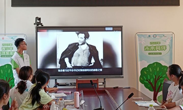 接下来大学生志愿者带来了关于红军长征路上飞夺泸定桥的故事。听着长征故事,孩子们真切地感受到英雄们的伟大,并深刻体会到我们今天的幸福生活离不开前辈们的付出与牺牲。
