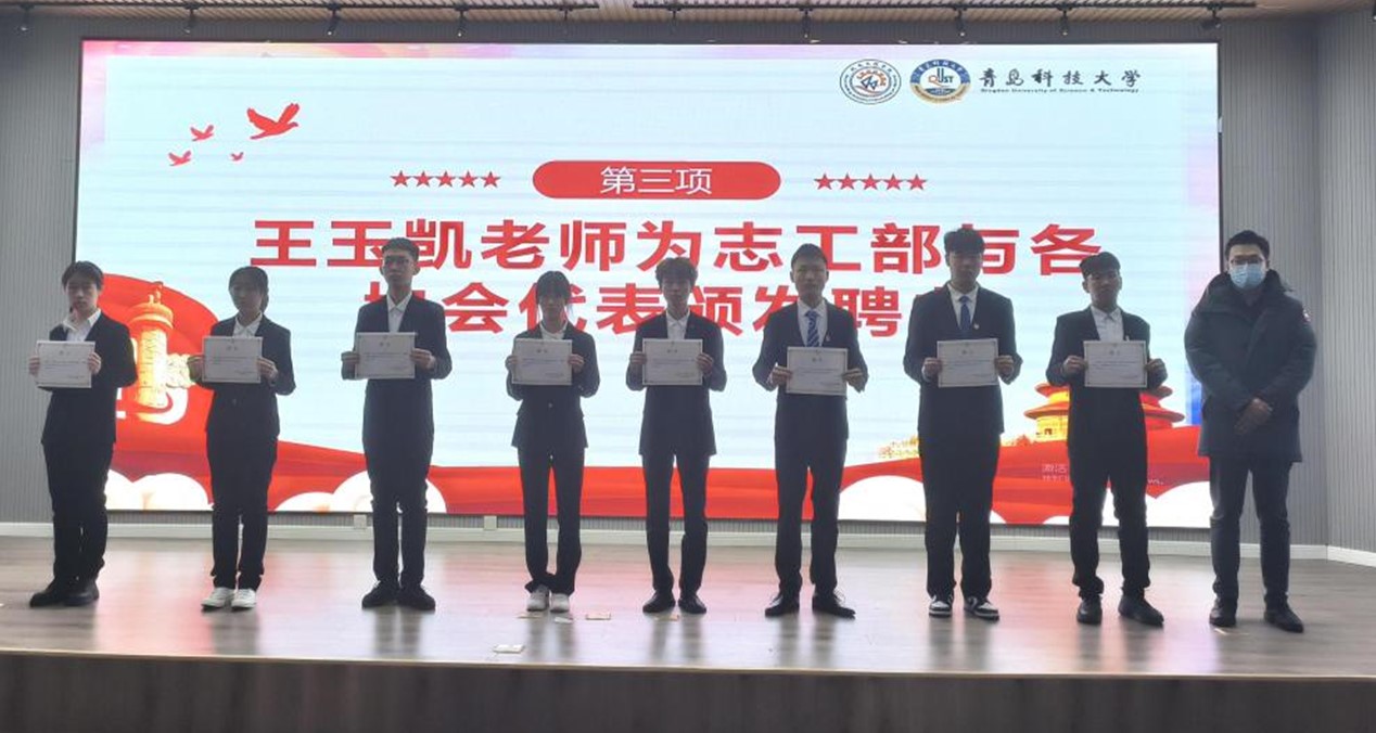 米乐mile官方网站宋达老师宣读了《关于聘任青岛科技大学米乐mile官方网站团委志工部二〇二二年学生干部的决定》,王玉凯老师、胡福超老师为志工部学生干部颁发聘书。随后,志工部部门负责人王敬仪从工作情况、团队建设、未来规划三个方面对部门作出了工作展望。