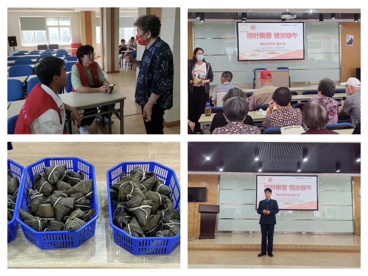 会后,学院志愿者协助社区开展“粽叶飘香、情浓端午”活动,志愿者同学与社区居民结合生活实际畅谈端午节传统习俗,讲述屈原的爱国故事、吟诵屈原爱国诗歌。