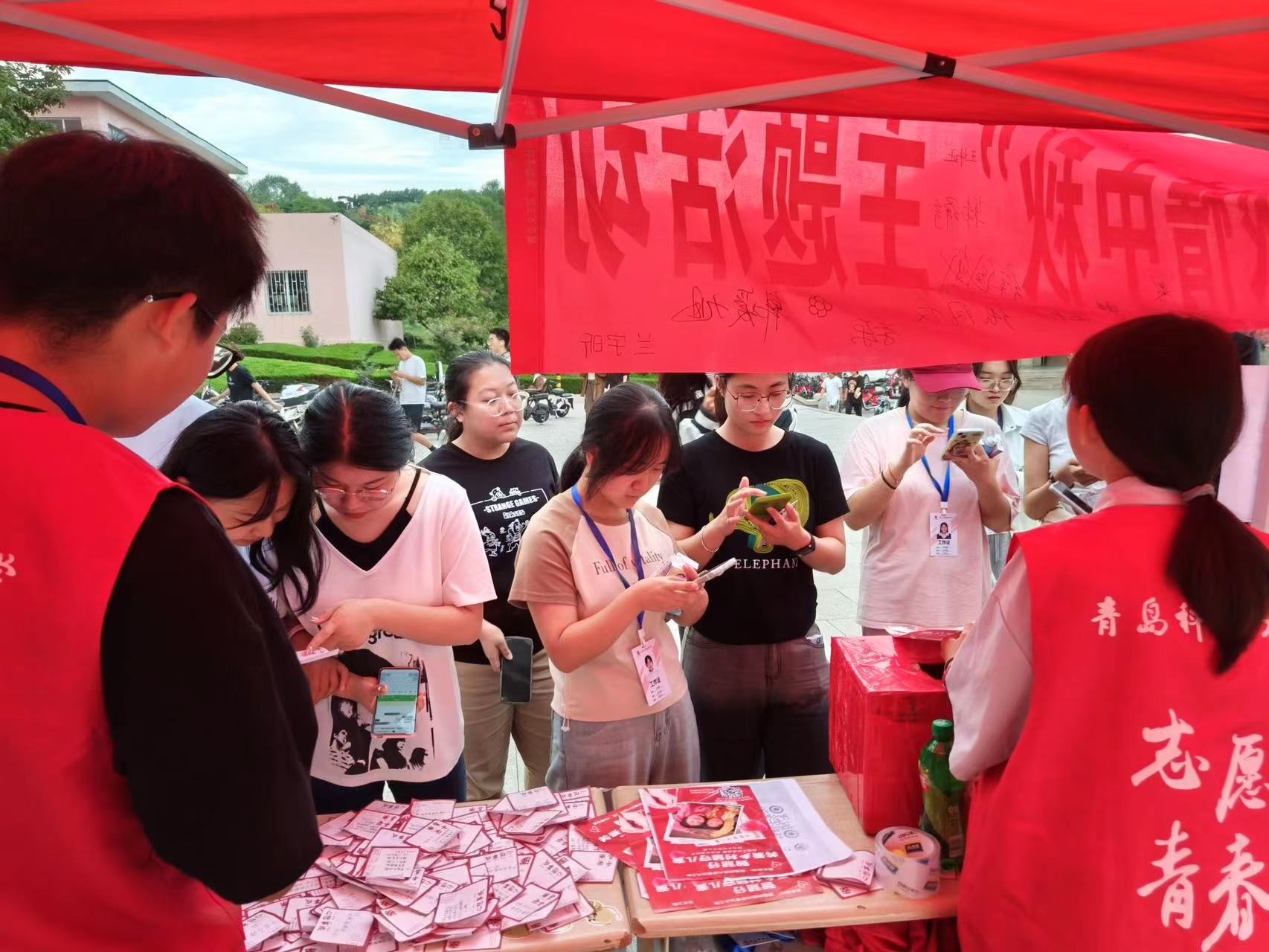 该活动自9月22日至9月24日在南苑食堂门口举办,在米乐mile官方网站青尘义工队志愿者以及青科大学子们共同参与下为2023年的中秋节增添了一分节日的欢庆,公益的热情。