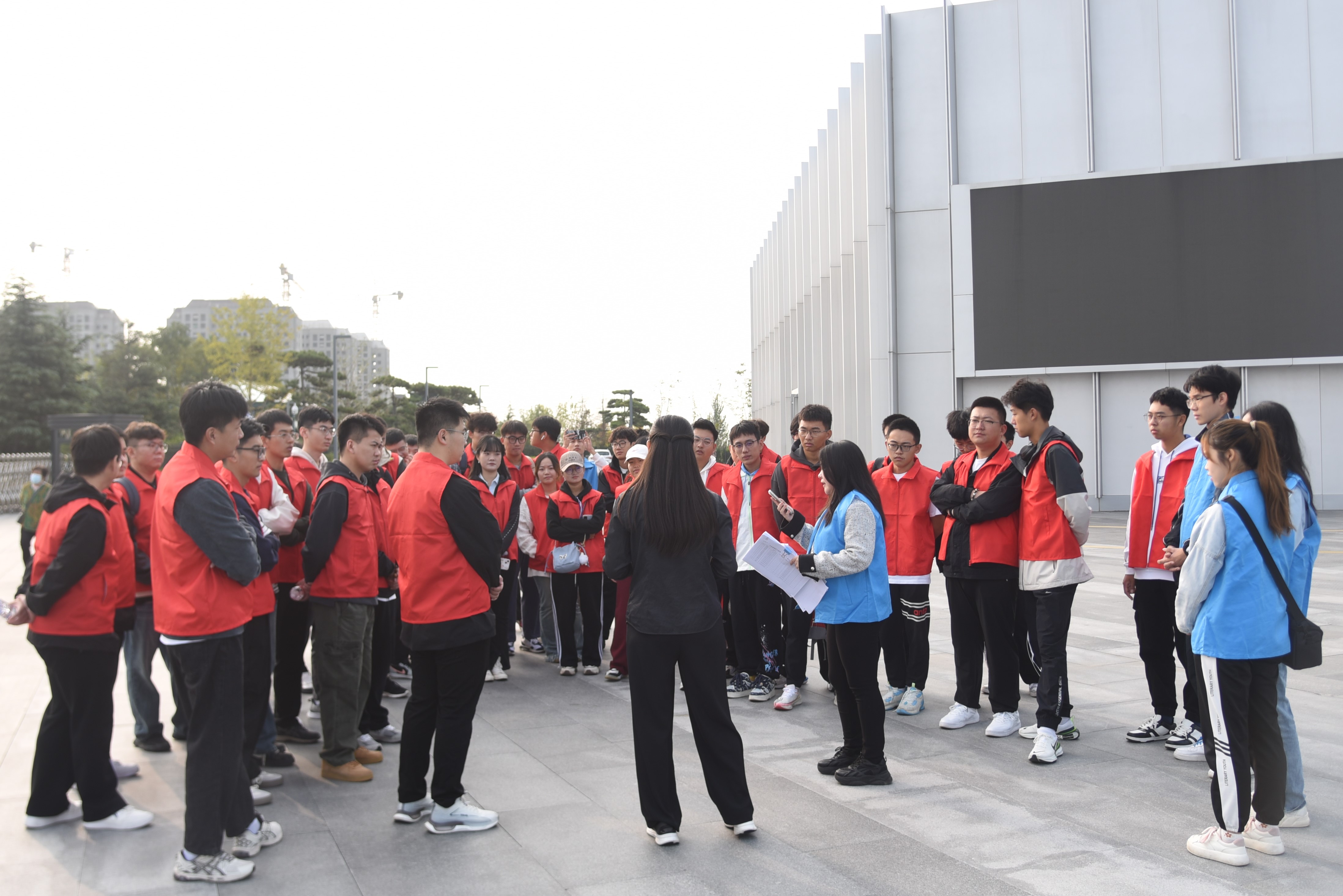 活动前期,相关工作人员为志愿者讲解残障人士的服务要点。志愿者们积极投入准备工作,提前对现场的无障碍标识和参观路线进行详细了解,引导残障人士有序进入参展地点,明确北大人民医院青岛医院的医护人员及青岛红十字搜救队的所在位置,确保活动能够顺利安全的进行。