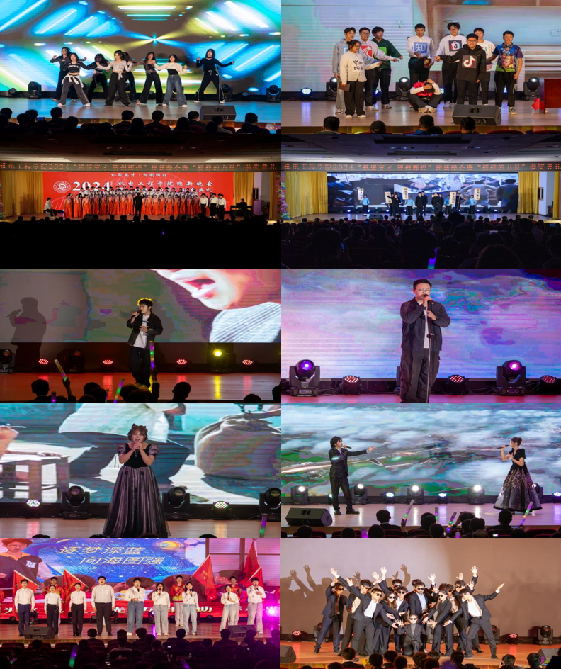 本次迎新晚会以“机聚英才·智创辉煌”为主题,分为“青青子衿·志怀家国”、“冉冉向新·执光开路”和“灼灼风华·向阳追梦”三个篇章。学院融媒体中心与学院宣传部提供技术支持,通过线上线下同步直播的方式,共吸引在线观看人数2.7万人次。师生们欢聚一堂,节目涵盖歌舞、器乐、朗诵、小品、情景剧等多种艺术形式。晚会在开场舞《BLACK MAMBA》充满青春动感的舞姿中拉开帷幕。情景剧《何为青年 青年何为》展示了新时代青年以闪亮的青春、扎实的行动通过回望历史、展望未来的故事形式书写青春华章,发出了属于机电学子的时代强音。学院合唱团带来歌曲《平凡之路》,阿卡贝拉的演唱形式令人耳目一新,深入人心的歌词和优美动人的旋律,传达着平凡人追求梦想、勇往直前的精神。机电研究生学子的朗诵《少年中国说》带给了观众一场文字与武术的完美碰撞,展现出中华儿女的英姿飒爽和传统文化的独特魅力。歌曲串烧节目以柔情的旋律与深情的歌词交织,声声传情,动人心弦。歌舞《舞动青春》自由欢快、热情奔放,点亮青春之我。小品《时间都去哪了》以独特的视角,在为大家带来欢笑的同时,传递出在注意力碎片化的时代里,珍惜光阴的生活态度和价值观。朗诵《机遇青春志愿有我》更是引领广大青年学子到祖国最需要的地方去,用脚步丈量祖国大地,绽放青春之花。最后,晚会在热情洋溢、欢乐温馨的《相亲相爱》师生歌舞表演中落下帷幕。