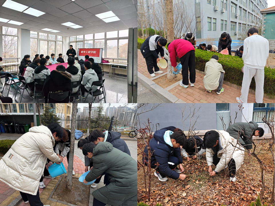 除此之外,学院还组织开展植树节主题团日活动日。活动伊始,通过知识讲解,让同学们深入了解植树节的由来及其对生态环境的深远影响,进一步增强环保意识。随后,学院组织青年学子投身校园绿植养护工作,以实际行动践行绿色发展理念,共同守护美丽校园。