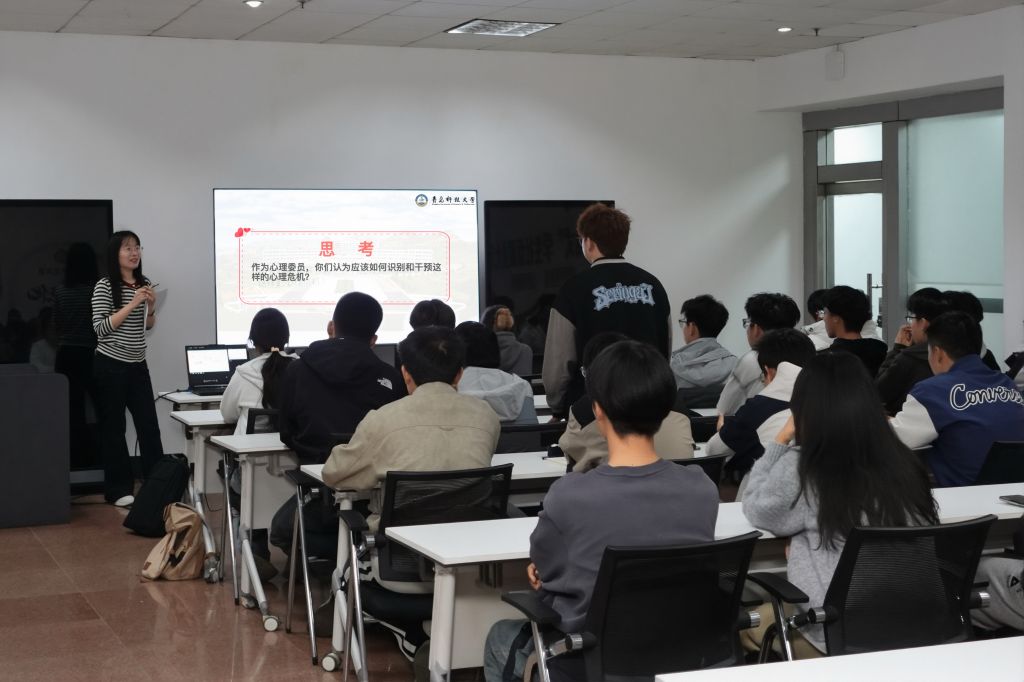 崔瑛围绕核心职责、有效沟通、心理危机信号识别及自我关怀展开讲解,引导心理委员在日常工作中主动关怀、及时反馈,做到早发现、早报告,同时注重自身心理能量维护,筑牢校园心理安全的基础防线。