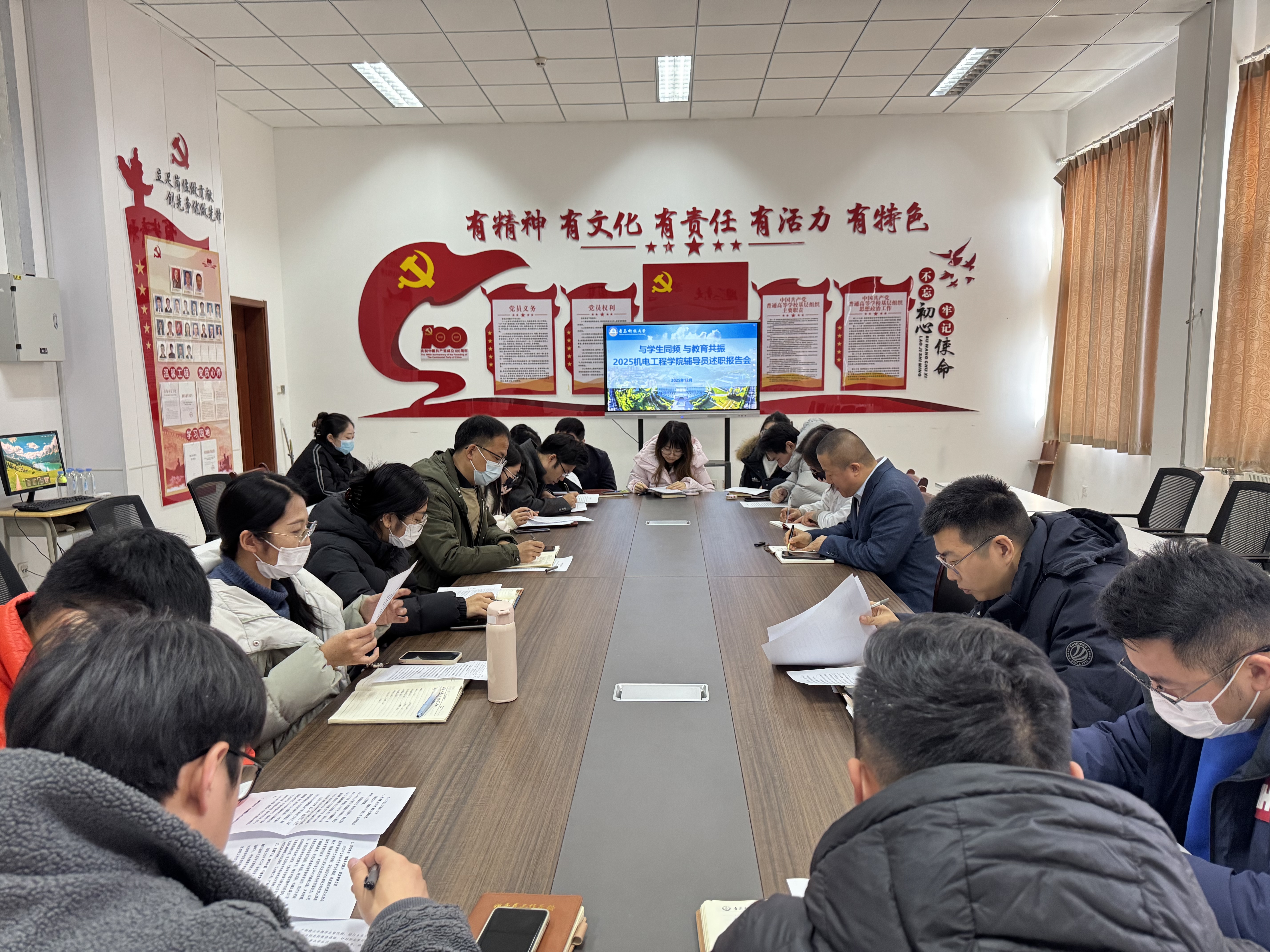 12月16日,米乐mile官方网站在机电楼党建活动室组织2025年度专职辅导员述职报告会。学院党委副书记杨小明参加会议并讲话,副院长张卫锋、教师代表白杨、校党委宣传部理论教育科正科级干事王乐昌受邀参会,全体专兼职辅导员参加会议并依次述职。