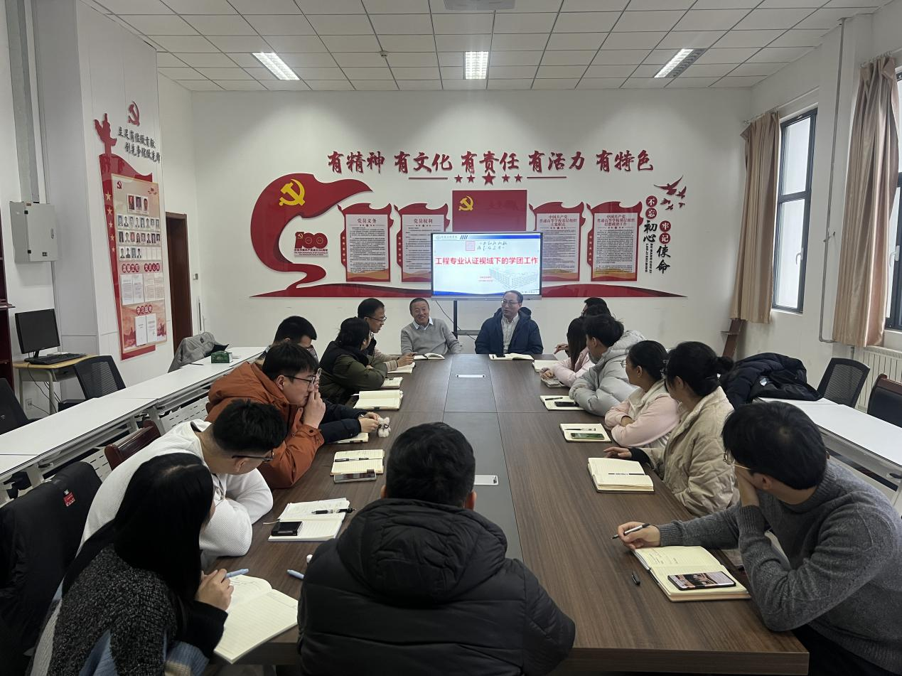 随后,学工办与教学办教师围绕认证指标解读、工作协同机制、材料梳理规范等方面展开深入研讨,明确了分工职责与时间节点。大家一致表示,将严格按照认证标准,细化工作流程,强化责任落实,推动学团工作与教学工作同频共振,为学院专业认证顺利通过筑牢基础。