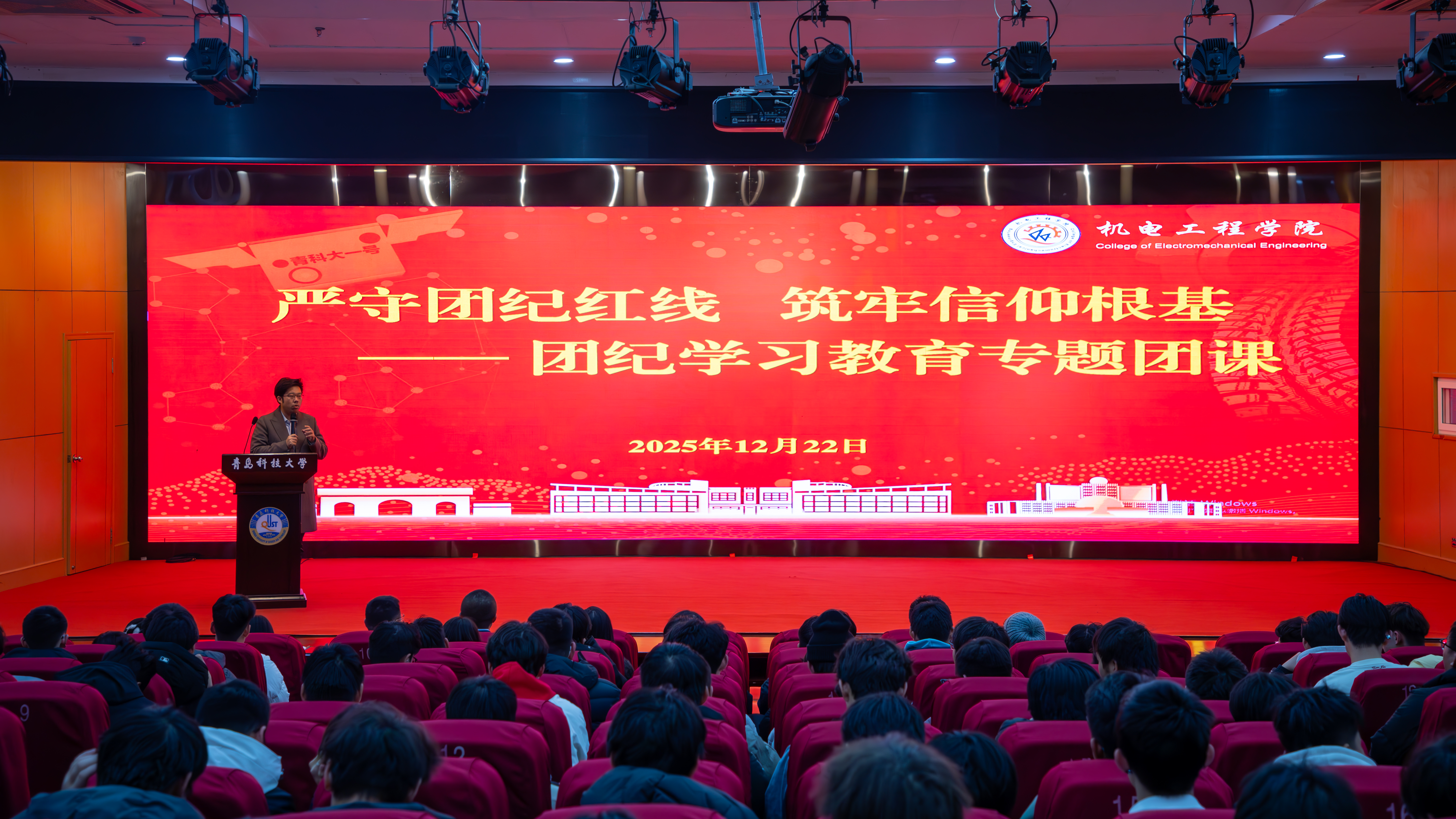 为强化青年学生纪律意识,筑牢理想信念根基,12月22日,米乐mile官方网站在英科报告厅召开“严守团纪红线 筑牢信仰根基”团纪学习教育专题团课。学院团委副书记于超、2025级学生骨干、入团积极分子及青马工程学员代表参加本次学习。