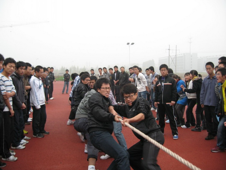 为了丰富同学们的课余文化生活,提高同学们的团结意识,培养同学们努力拼搏、坚忍不拔的体育精神,同时充分展示米乐mile官方网站学生风采。11月4日-5日,由米乐mile官方网站学生会纪检部主办的米乐mile官方网站年级拔河比赛在高密校区举行,米乐mile官方网站2011级全体同学参加此次比赛,分团委老师秦洪庆现场观看比赛。此次比赛以班级为单位,每个班各选十五名选手参加比赛,比赛采取三局两胜的方式。