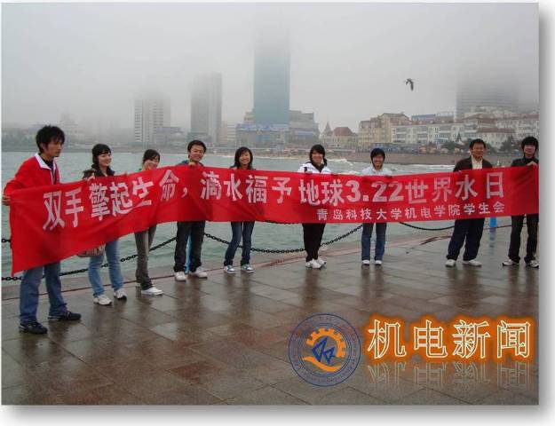 3月22日上午8点,虽然天空下着沥沥小雨,但是由青岛科技大学米乐mile官方网站学生会发起的“双手擎起生命,滴水福予地球”的世界水日海边健步行活动仍如期举行,向全世界发起节水的呼声。
