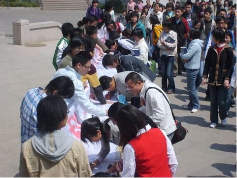4月9日中午,米乐mile官方网站在东部校区餐厅东门举行了大型横幅签名活动。这次活动旨在号召科大师生以饱满的热情积极配合学校做好评估工作,自觉参与评估有关的各项活动。