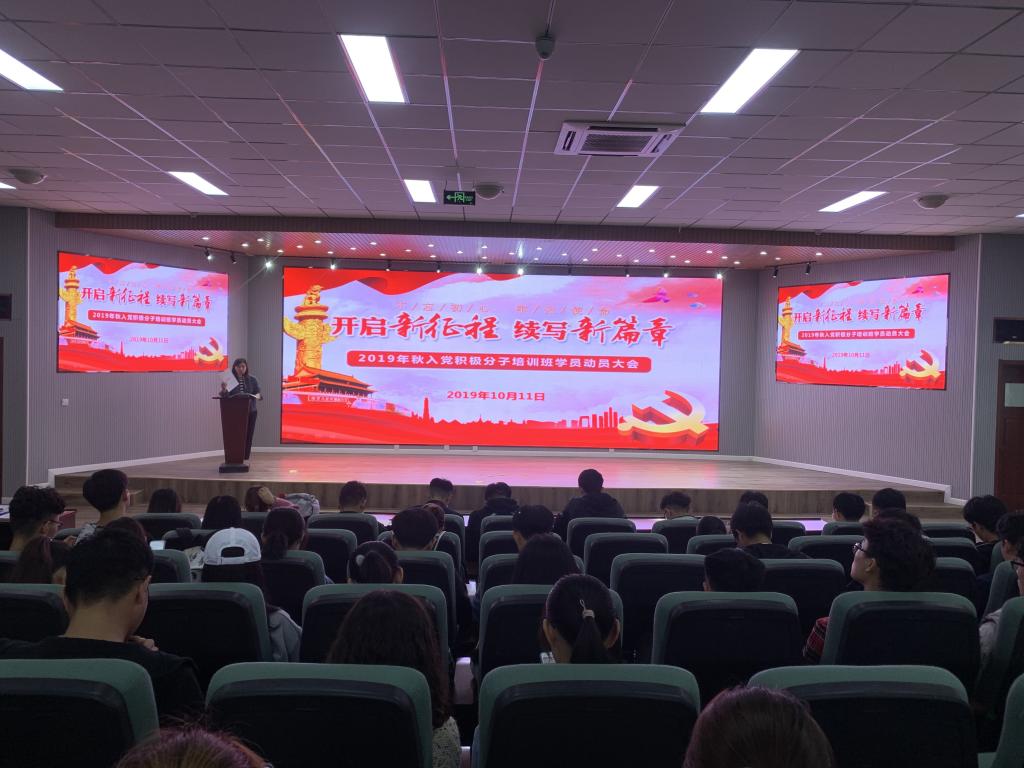 10月11日中午,米乐mile官方网站2018级本科生在机电楼530召开2019年秋季入党积极分子培训班学员动员大会,米乐mile官方网站2018级辅导员苗清、孙坤岩及2019年秋季入党积极分子培训班学员参加了此次动员大会。