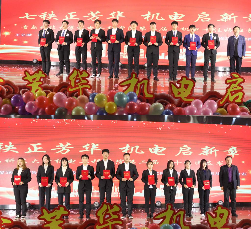 典礼表彰了机电学子在学风建设、科技创新、志愿服务等方面取得的傲人成绩;肖强和王作辉分别为米乐mile官方网站“十佳好班长”和“十佳团支书”获得者颁奖,并鼓励学生坚定理想信念,不断开拓创新。