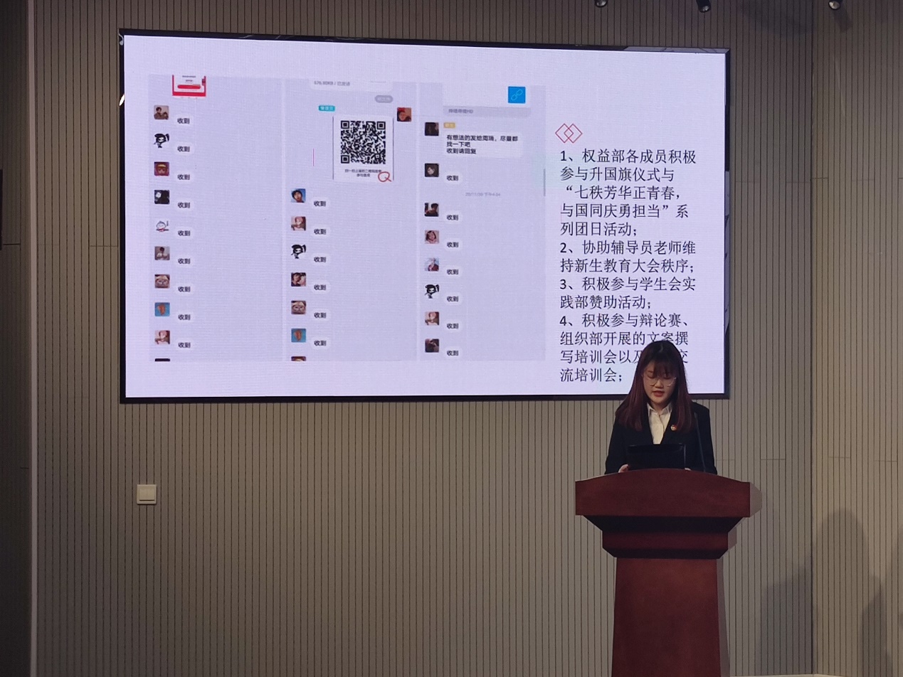 会议第二阶段,为全面落实2020-2021学年度第一学期米乐mile官方网站学生会的工作开展情况,各部门针对本部的工作情况面向学生会全体同学进行述职汇报 。