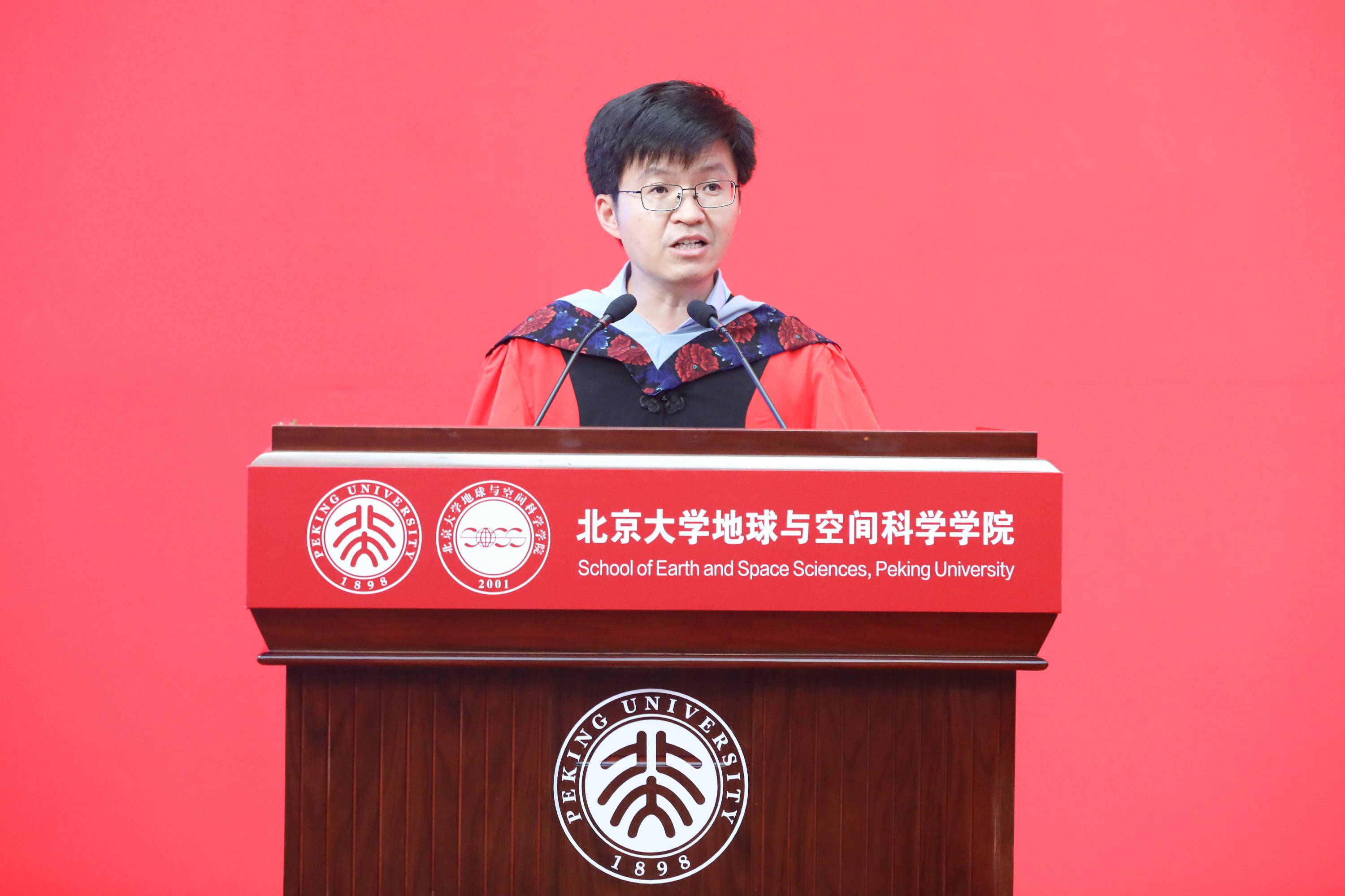 教师代表黄舟向毕业生提出三点期望:一是做有使命的卫星,以尖端科技服务朴素人类需求,诠释“家国天下”担当;二是做敢创新的行星,保持“地质锤思维”应对AI时代挑战;三是做带温度的探测器,让科研流淌人文关怀。他勉励学子从“观察者”成长为“塑造者”,怀揣北大精神,以地空学识解读时代命题,用遥感天眼守望家园未来。
