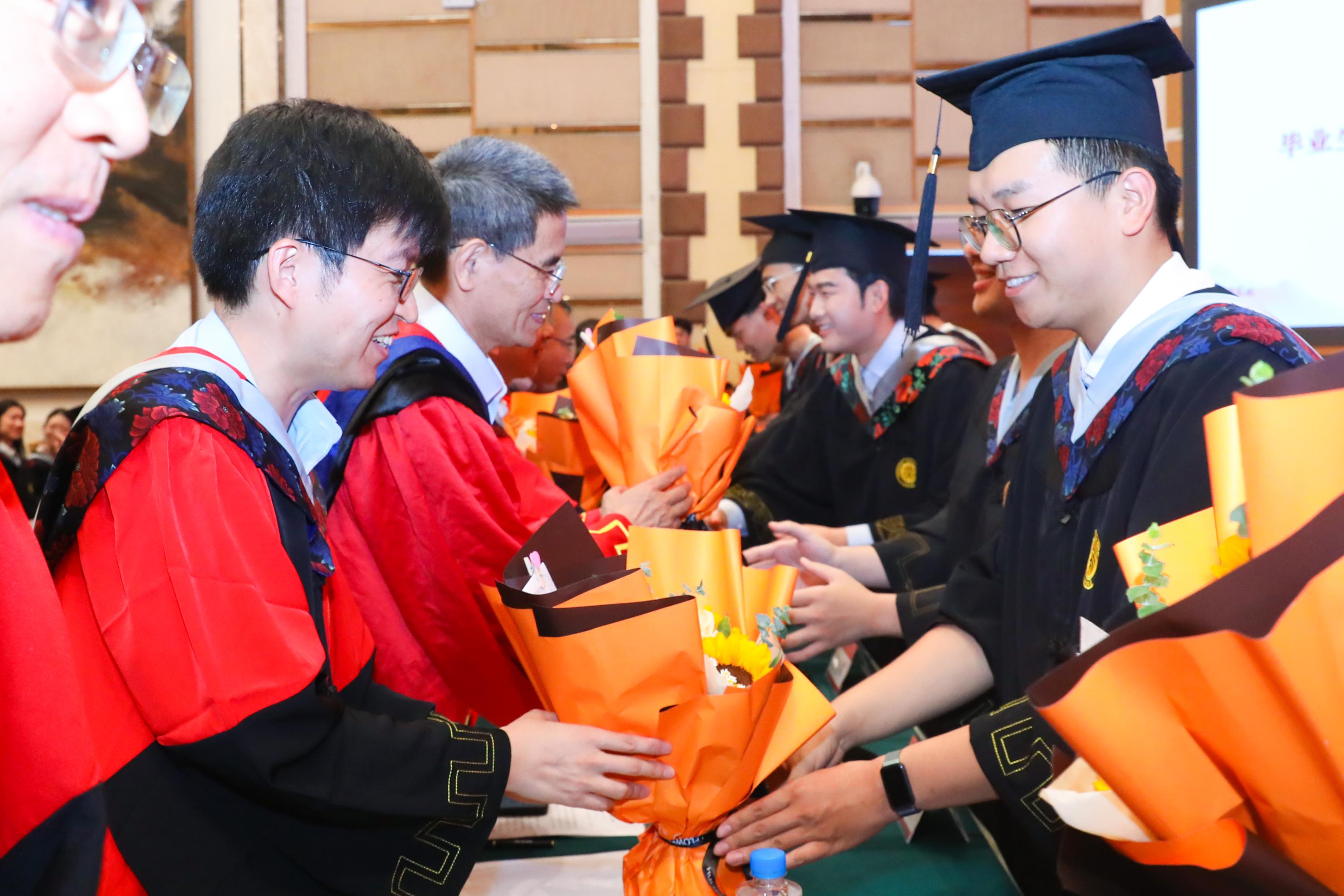 毕业生代表为教师代表献上鲜花,表达最诚挚的感谢和衷心的祝福!