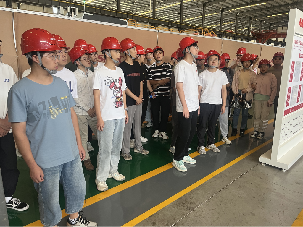 随后,师生在工作人员的指引下参观了软控装备产业园。工作人员带领学生走进生产车间进行参观,详细介绍了生产流程、生产设备及车间管理模式等,并针对学生们提出的问题进行详细解答。