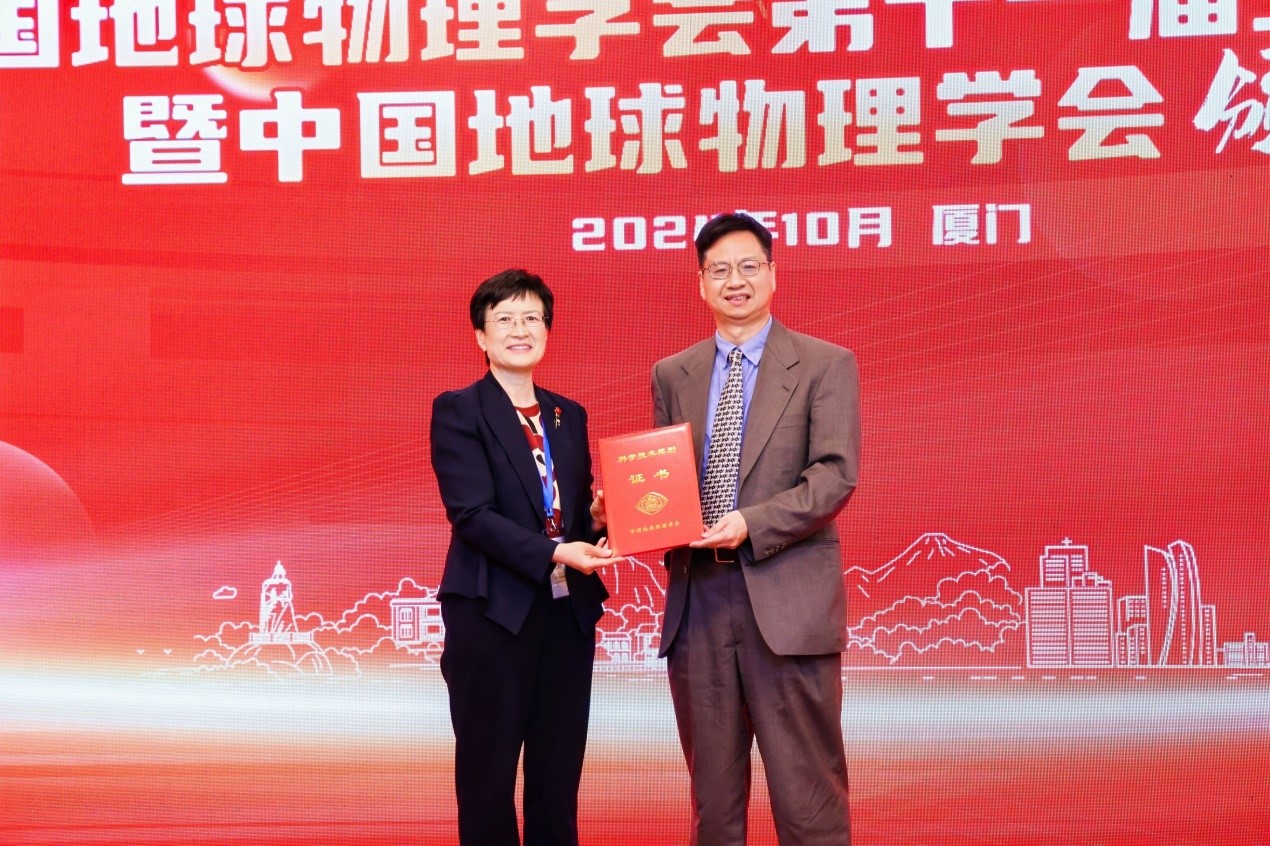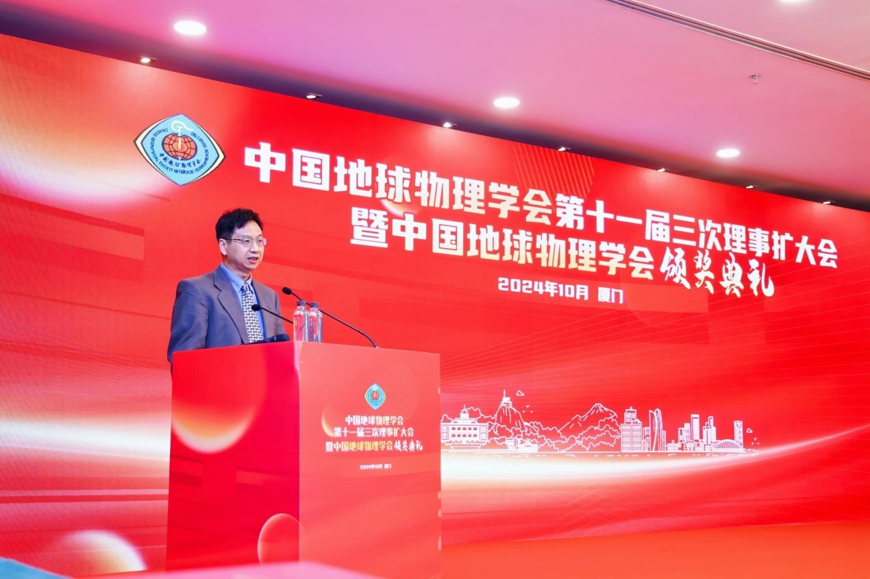 20241021日,中国地球物理学会第十一届三次理事扩大会暨颁奖典礼在厦门国际会展中心隆重举行。颁奖典礼上,理事长底青云院士宣读了中国地球物理学会科学技术奖获奖项目及获奖人名单。72886必赢欢迎光临讲席教授宋晓东荣获2024年中国地球物理学会科学技术创新奖一等奖。底青云院士为获奖人宋晓东教授颁发了荣誉证书。
