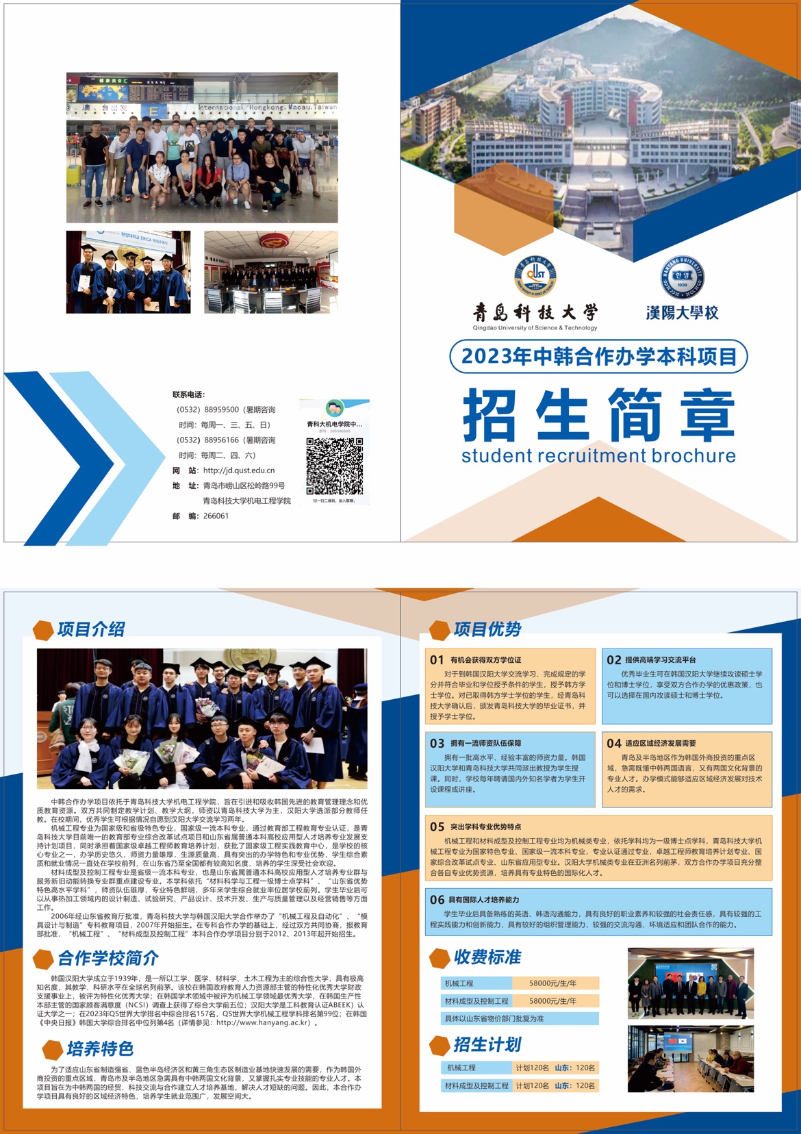 2006年经山东省教育厅批准,青岛科技大学与韩国汉阳大学合作举办了“机械工程及自动化”、“模具设计与制造”专科教育项目,2007年开始招生。在专科合作办学的基础上,经过双方共同协商,报教育部批准,“机械工程”、“材料成型及控制工程”本科合作办学项目分别于2012、2013年起开始招生。
