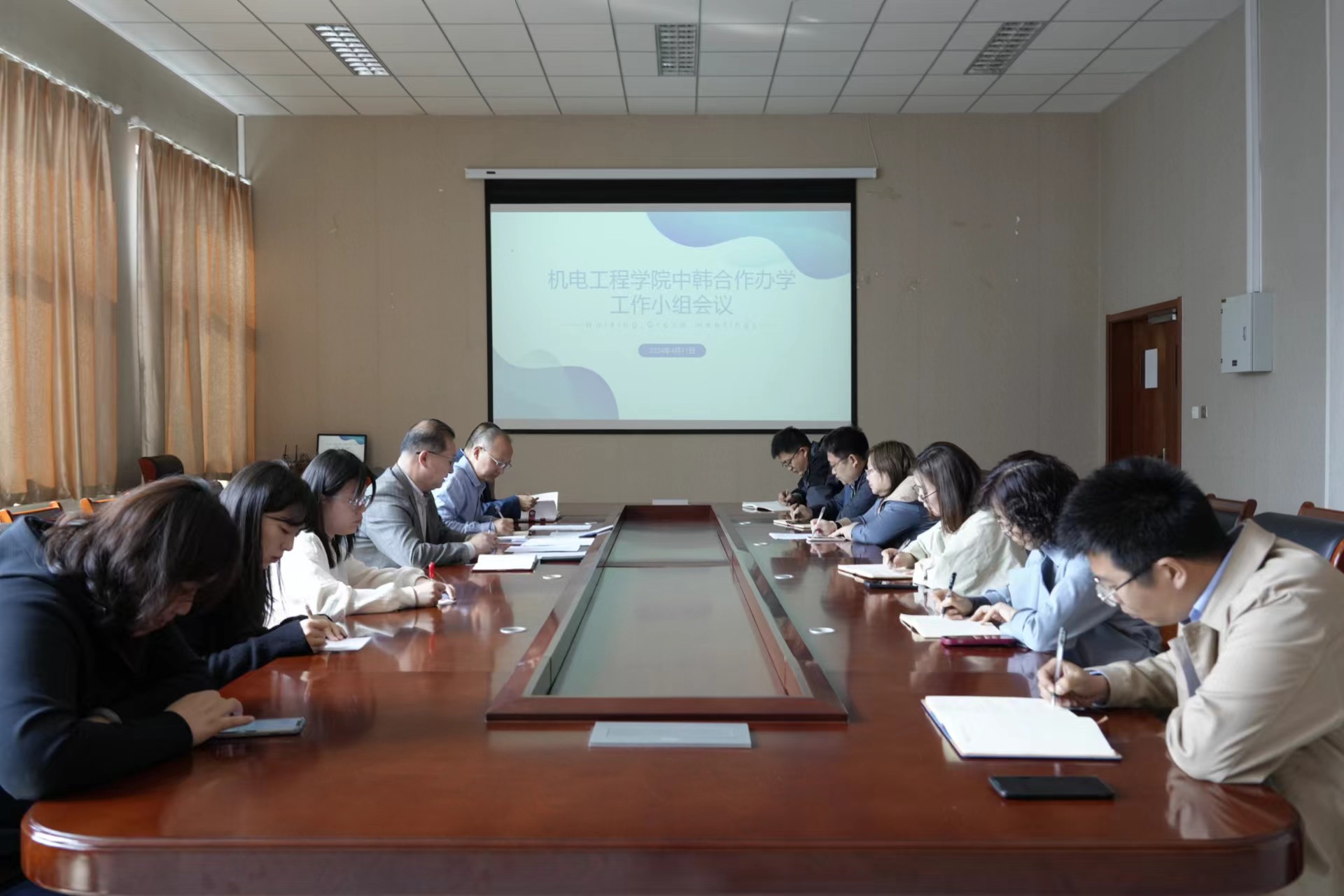 4月11日,米乐mile官方网站中韩合作办学工作小组会议在D3楼518会议室召开。米乐mile官方网站党委书记任允晓、副书记兼副院长杨小明、学院办公室主任、各系室、教学办、学工办教师代表出席会议。副院长杨化林主持会议。