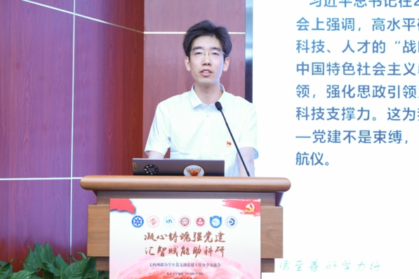 中国矿业大学(北京)地球科学与测绘工程学院博24-1党支部张琦以《党建引擎驱动地学创新:在能源与生态的前沿书写中国方案》为题,分享了支部成员用地质智慧守护绿水青山的青年答卷。中国石油大学(北京)地球物理学院勘探尖兵党支部苟祖康以《顶天立地,格物致知:书写一融双高地物新篇章》为题讲述了党支部联合云南省楚雄彝族自治州河硐村开展产学研转化的实践案例。中国科学院大学地球与行星科学学院建筑中心党支部杜晓晗以《党建领航科研路,共筑人居新景图》为题介绍了党支部服务中共第一个农村支部河北省衡水市安平县台城村特别支部乡村规划与设计提升的示范工作。