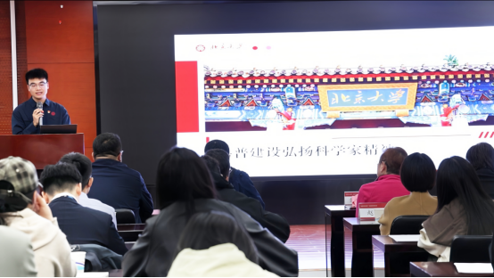 中国石油大学(北京)地球物理学院“探测先锋”党支部苟祖康以“从石油勘探出发,追寻李四光精神”为题,分享了李四光先生主导国家战略性石油勘探的故事,李四光先生聚焦国家所急开展科研攻关,其强烈的民族责任感始终激励着当代青年。