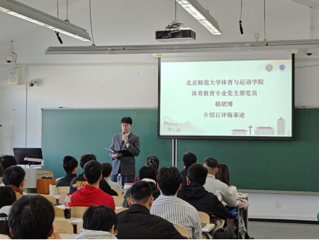 北京师范大学体育与运动学院体育教育专业党支部党员韩珺博介绍了石评梅的事迹,从她的生平与教育经历、文学成就与作品以及爱情经历等角度,展现了一个完整的石评梅的形象。