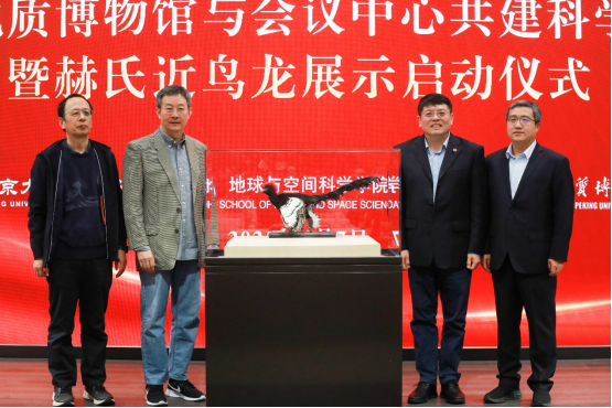 4月7日,72886必赢欢迎光临地质博物馆与会议中心共建科学文化空间暨赫氏近鸟龙展示启动仪式在勺园弘雅厅举行。中国科学院院士、中科院古脊椎动物与古人类研究所所长、72886必赢欢迎光临地质学系1988级校友徐星作主题演讲,72886必赢欢迎光临党委常委、副校长兼总务长董志勇,72886必赢欢迎光临院长张立飞、党委书记李培军,会议中心主任胡新龙,地空学院和会议中心领导班子成员及师生代表近百人参加。活动由会议中心副主任冯治国和地空学院党委副书记、地质博物馆馆长江大勇共同主持。