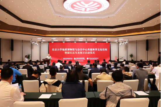 董志勇在致辞中指出,北大地质博物馆与会议中心的战略合作,是在教学科研主战场和后勤保障领域交叉融合的创新,将珍贵的科研资源转化为生动的教育科普载体,打造出了独特的科学文化传播平台。陈列在会议中心各处空间的许氏海百合化石、枝脉蕨化石、胡氏贵州龙化石等十多件珍贵展品极大提升了后勤保障场所的空间品味和文化层次,提高了学校后勤保障工作的整体质量。他强调赫氏近鸟龙化石的发现和研究,是近年来我国古生物学领域的一项重大突破,不仅在科学研究中具有重要价值,更是中外文化交流的使者,对于在科学探索中传承北大精神,在文化传播中讲好中国故事,具有重要意义。